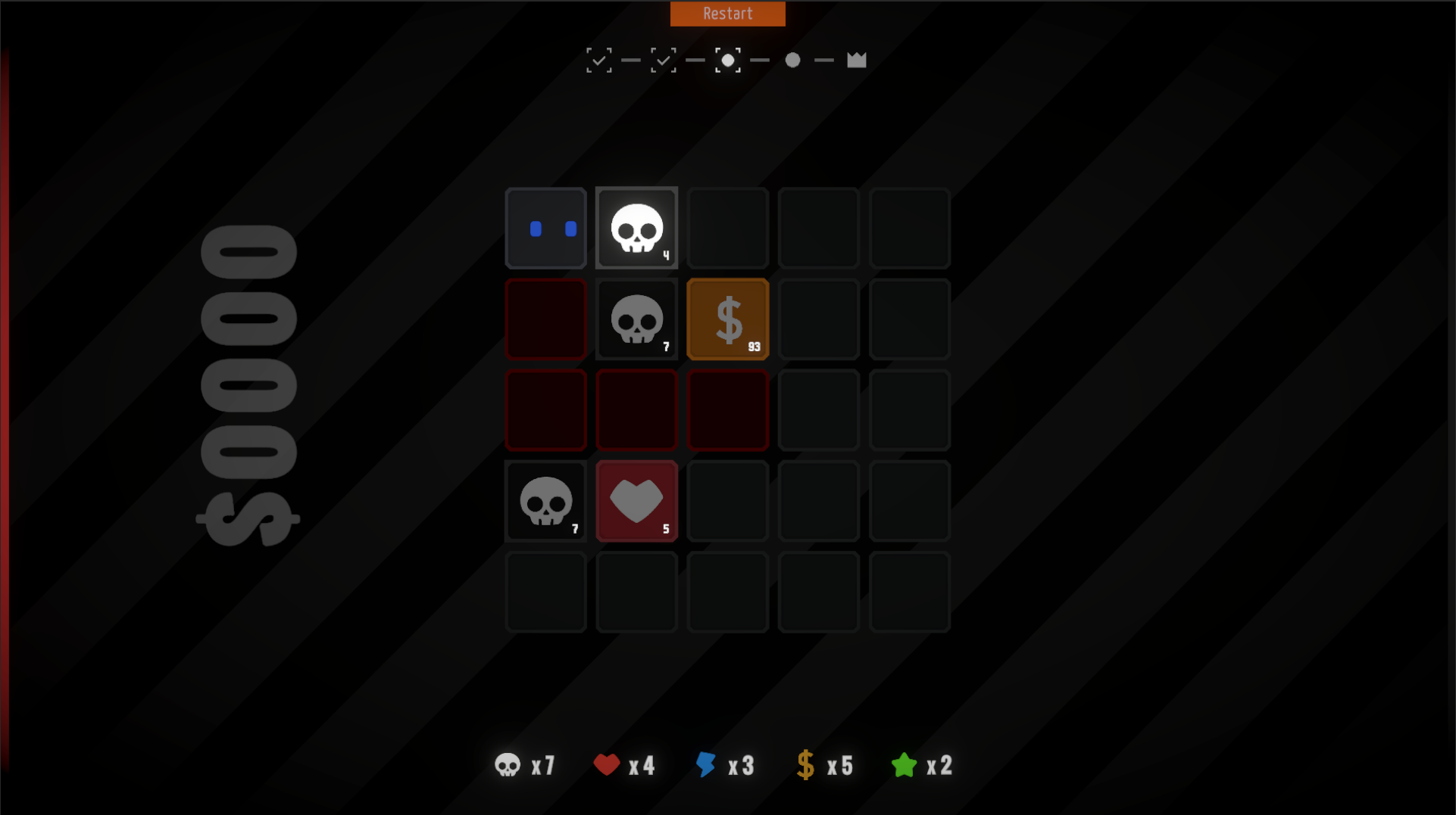 RiskCrumbs is a grid-based puzzle adventure inspired by the tension of Minesweeper, but with roguelike twists.