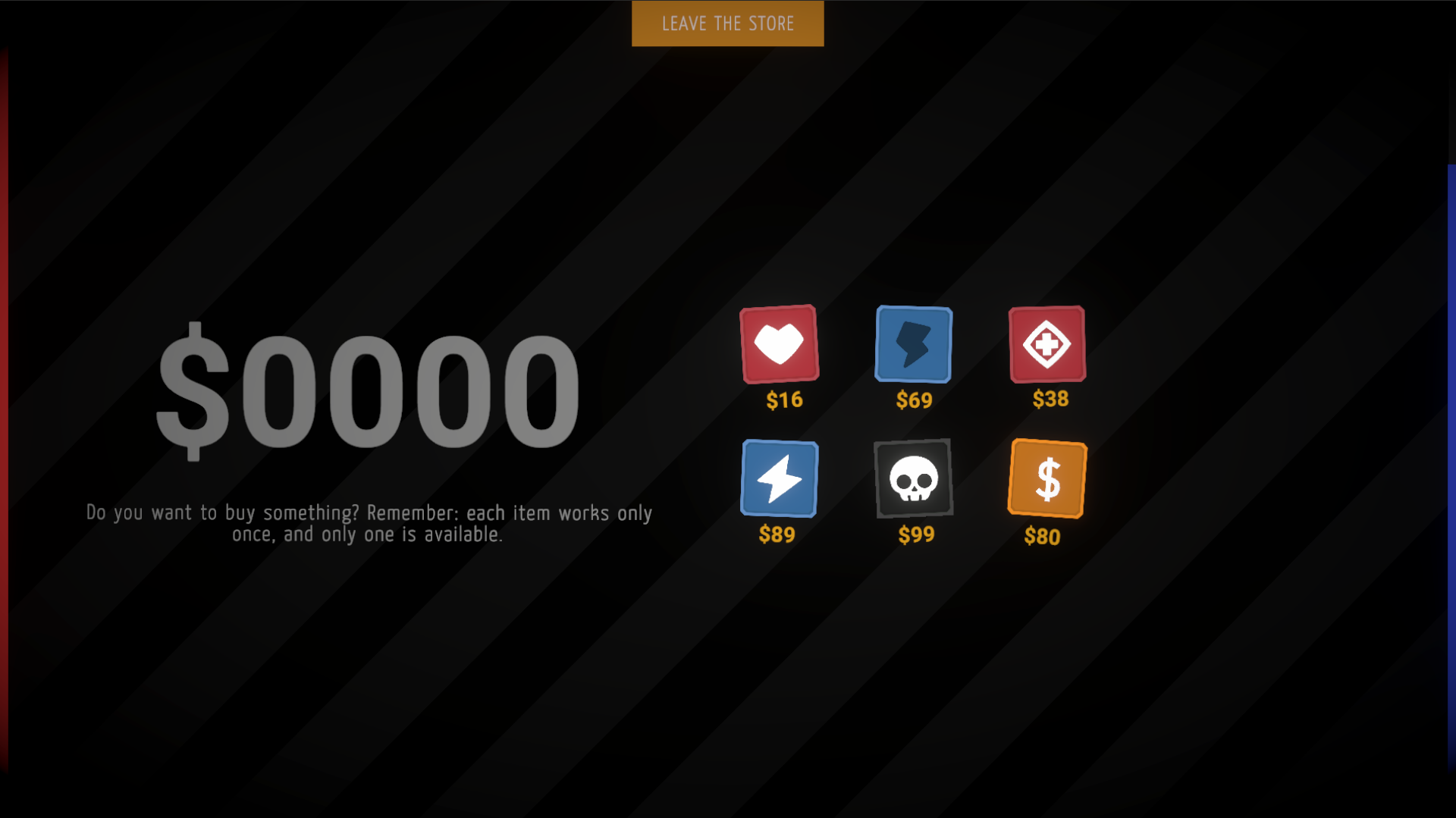 At the end of each level, you’ll visit a shop, where gold can be exchanged for upgrades and items to prepare you for the increasingly dangerous grids ahead.